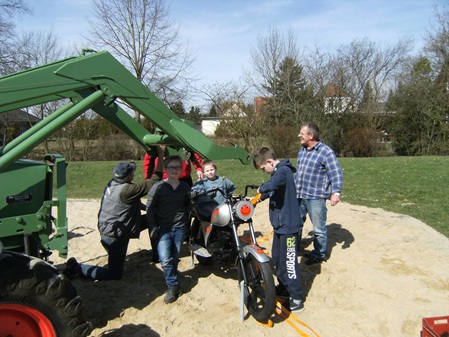 Die Gemeinschaftsarbeit war gegen 16:00 Uhr erledigt und alle Anwesenden vom freiwilligen Helfer über die Eltern mit ihren Kindern des Spielkreises, der Feuerwehr, dem Schützenverein, den Schlepperfreunden, dem Angelsportverein und natürlich auch den Bikerfreunden aus Wolthausen waren alle fröhlich versammelt.